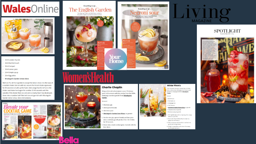 To teach consumers how to use the freeze dried fruits, we collaborated with a recipe developer and photographer who created beautiful seasonal cocktail and mocktail recipes, which we regularly pitched to journalists to use in both printed publications and online, offering a credit to Mixologist’s garden and its website.