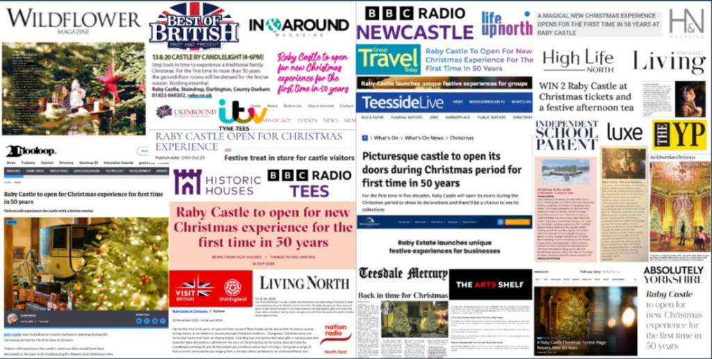 We also tactically utilised additional Christmas releases, such as the dedicated Christmas Market push, to mention Raby Castle at Christmas again.​
